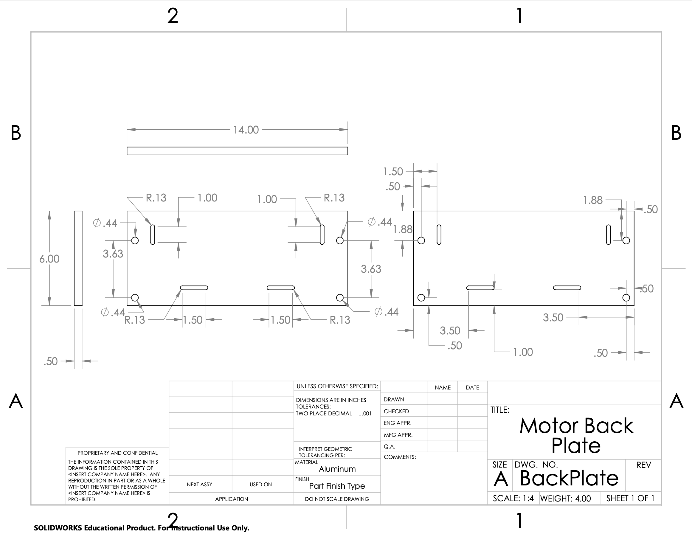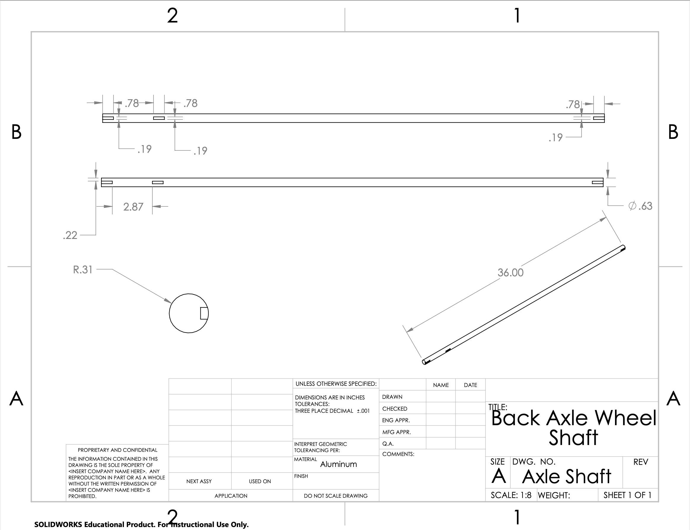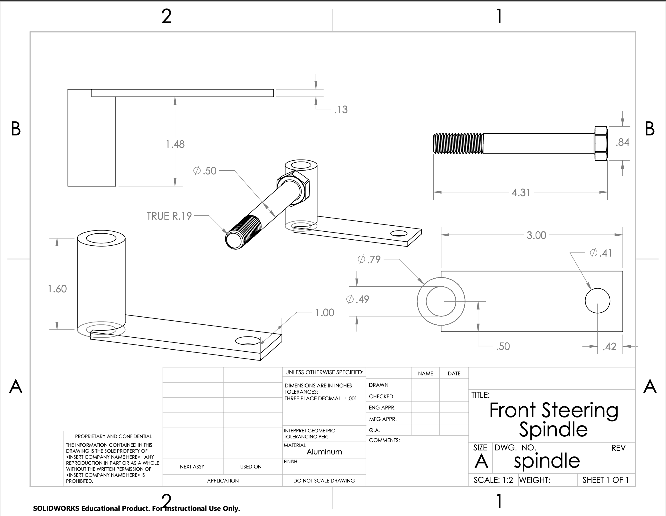 Our design is a mix of store bought and machined parts. The CAD drawings for the machined parts are shown below.