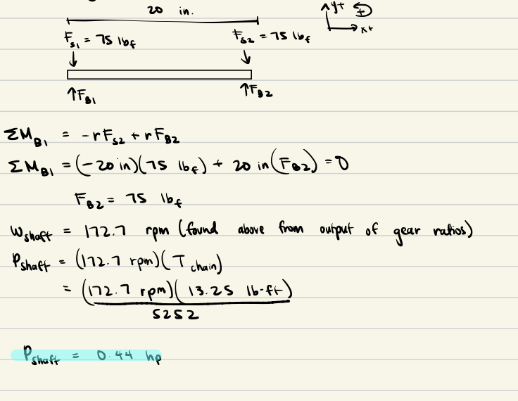 This allows us to find the force of the bearings and the power outputted by the shaft.